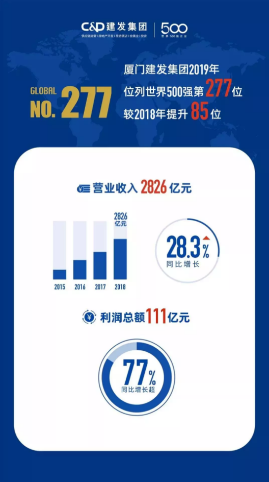 北京时间7月22日,,,,,,《财产》杂志宣布2019天下500强榜单,,,,,,首页|尊龙集团中国官方网站集团跃居第277位,,,,,,较2018年上升85位。。。。。排名背后,,,,,,是一直提升的运营效率和谋划质量。。。。。2018年,,,,,,首页|尊龙集团中国官方网站集团实现营业收入2826亿元,,,,,,同比增添28.3%;;;;;利润总额111亿元,,,,,,同比增添凌驾77%。。。。。