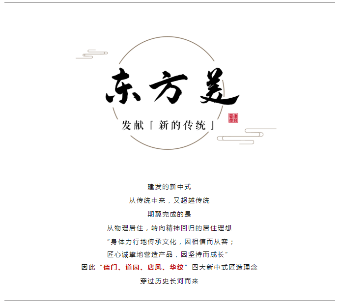 提出"建识东方,,,,,,,发献大美"的新中式产品主张