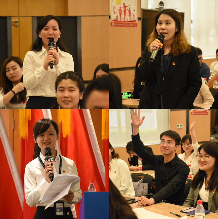 随后,, ,,,,“悦读会”主题分享运动正式最先。 。。。。。。本次分享选取了《夷易近人—习近平的语言实力》一书。 。。。。。。该书辑录了中共十八大以来,, ,,,,习近平总书记在种种场合揭晓的主要讲话中富有特色的引文小序。 。。。。。。四位加入的高管站在企业生长的角度,, ,,,,摘取了书中四个章节为各人引读。 。。。。。。随后,, ,,,,八名青年党员代表先后现身说法,, ,,,,以见闻有感、微党课等方法举行分享。 。。。。。。高管们的引读铿锵有力,, ,,,,青年们的分享感人肺腑,, ,,,,运动现场掌声一直。 。。。。。。与会职员深刻地感受到了武汉国有地产企业党员干部和青年员工们的蓬勃生气和高昂姿态。 。。。。。。